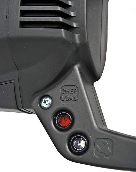 - Индикатор обслуживания – горит около 10-ти рабочих часов до замены угольных щеток