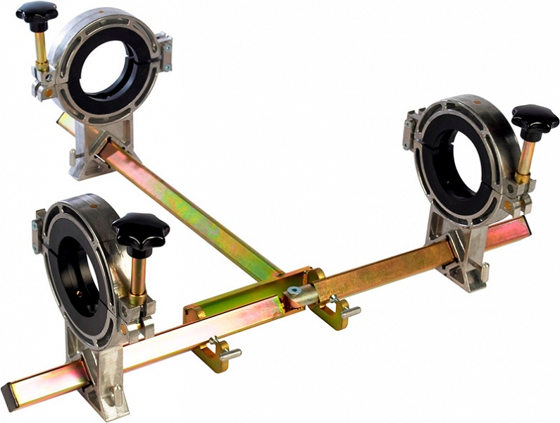 - Трехсторонняя конструкция: поворотное основание с шагом 22,5° для муфт и отводов и рама для тройников с зажимами